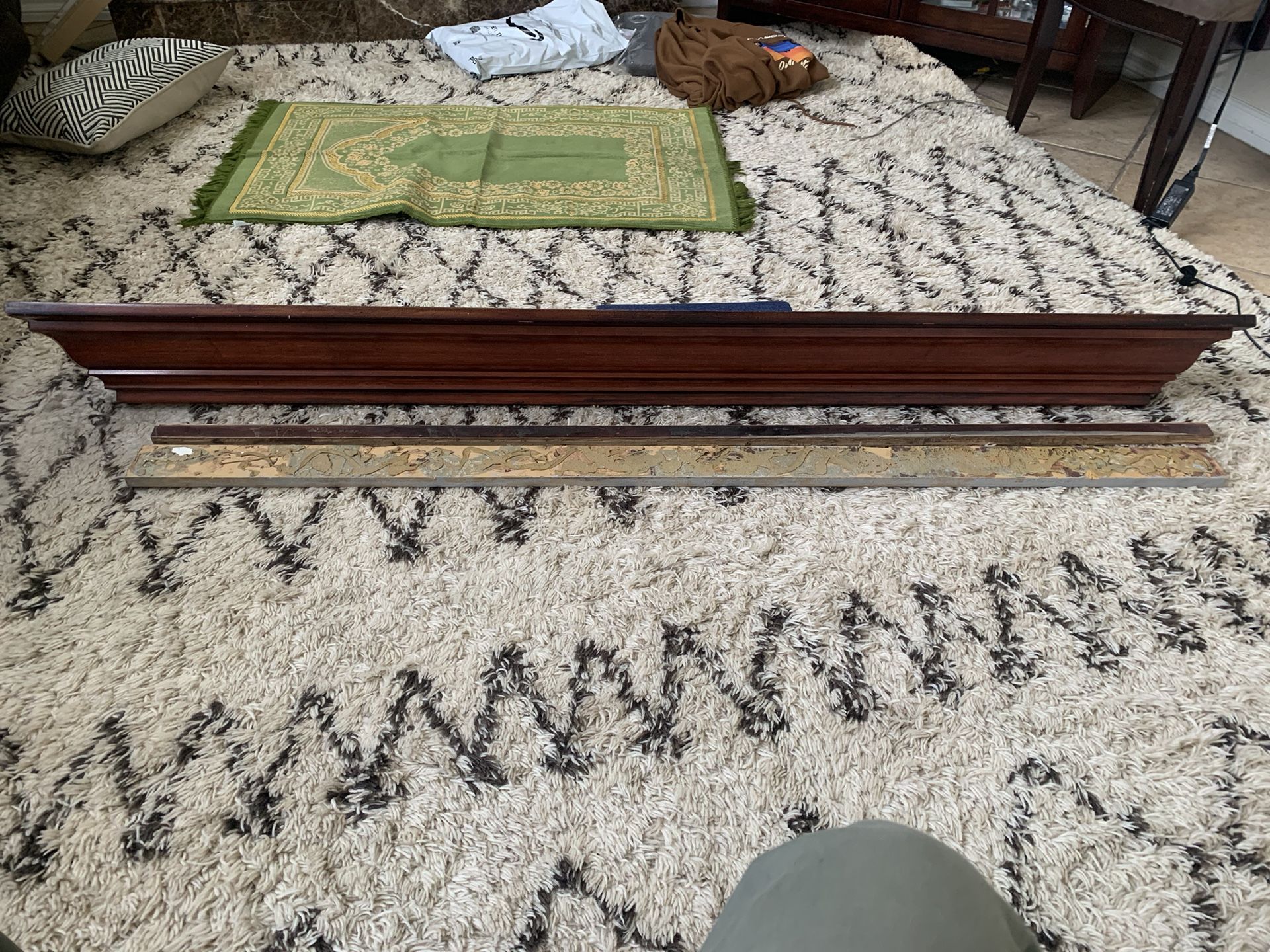67” X 5-1/2 Fireplace Mantel Decor Wood with all supporting wood pieces very good condition