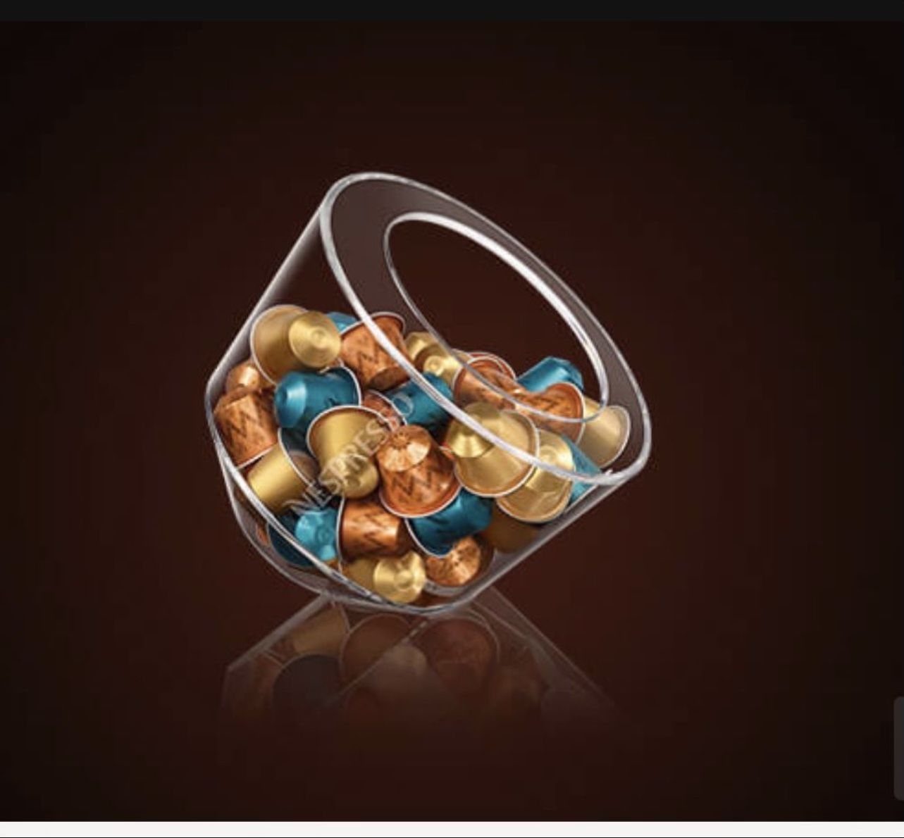 ***BRAND NEW****NEVER USED**** Organize and exhibit your coffee capsules in this classic Glass Bonbonniere dispenser in the form of an iconic Nespresso coffee capsule. Transparent capsule dispenser made of PMMA (polymethyl-methacrylate). Capacity: 50 capsules (supplied without capsules) Original: 35