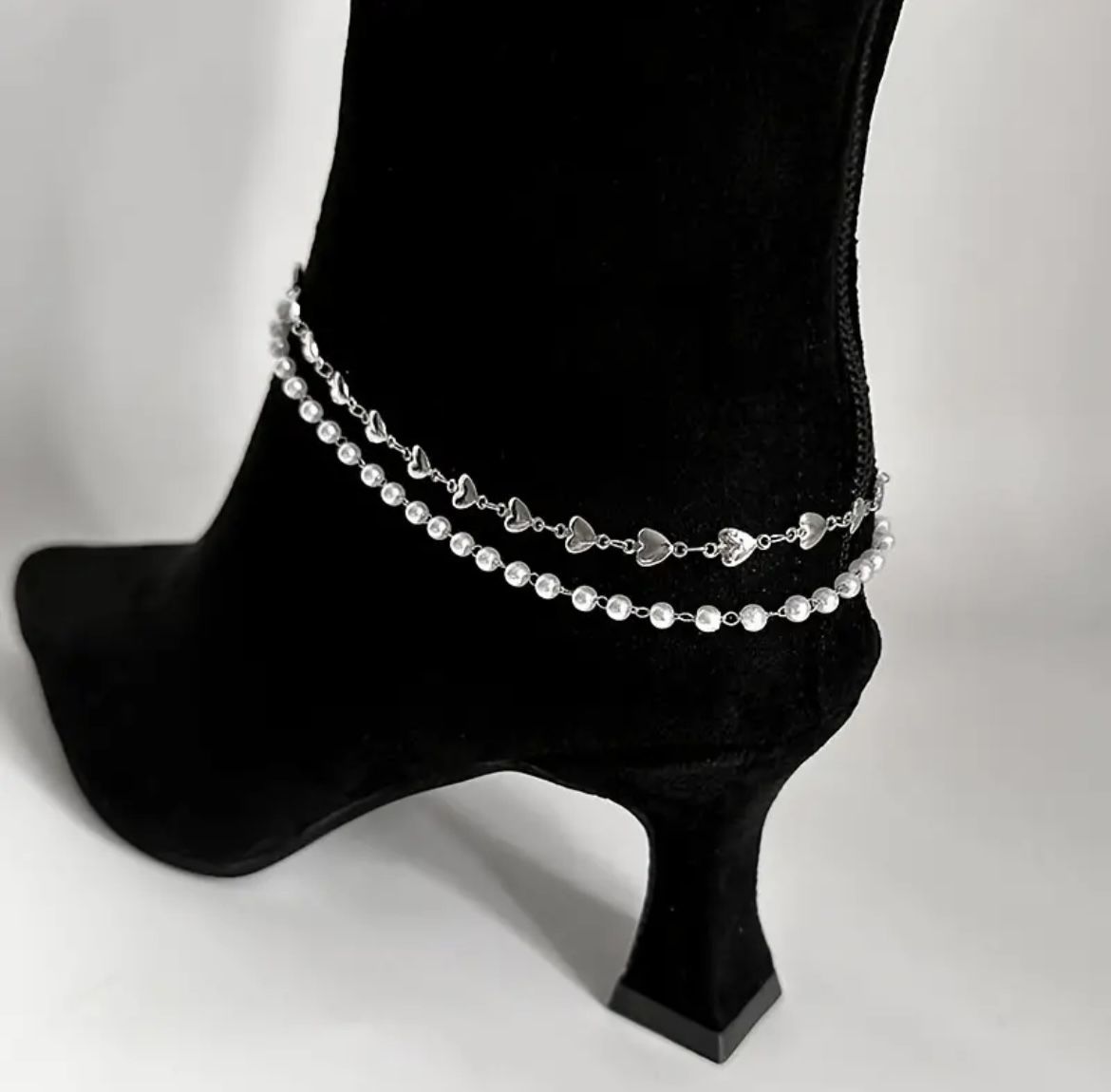 1pc. Double Layer Stylish Star & Artificial Pearl Anklet Double-layer High Heel Shoe Chain Detachable Shoe Accessories Multilayer Faux Pearls Beads & Star Chain Anklet Vintage Style Boho Style Ankle Bracelets Color: Silvery