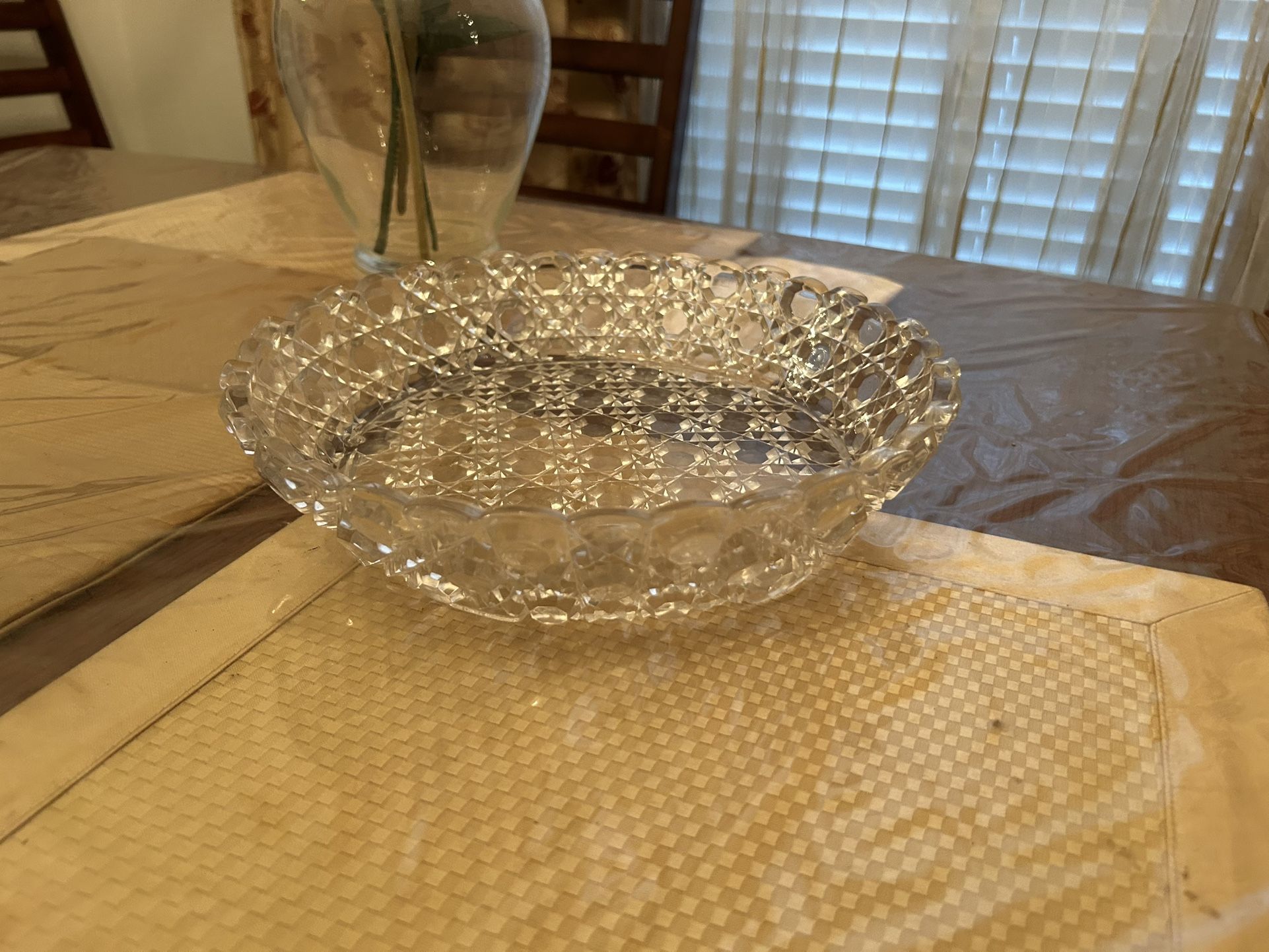 10 1/2 inches/crystal bowl with 3 sections Cash only $25 Must pick up in Euless, TX 76039 No returns no refunds or exchanges after purchase has been made!