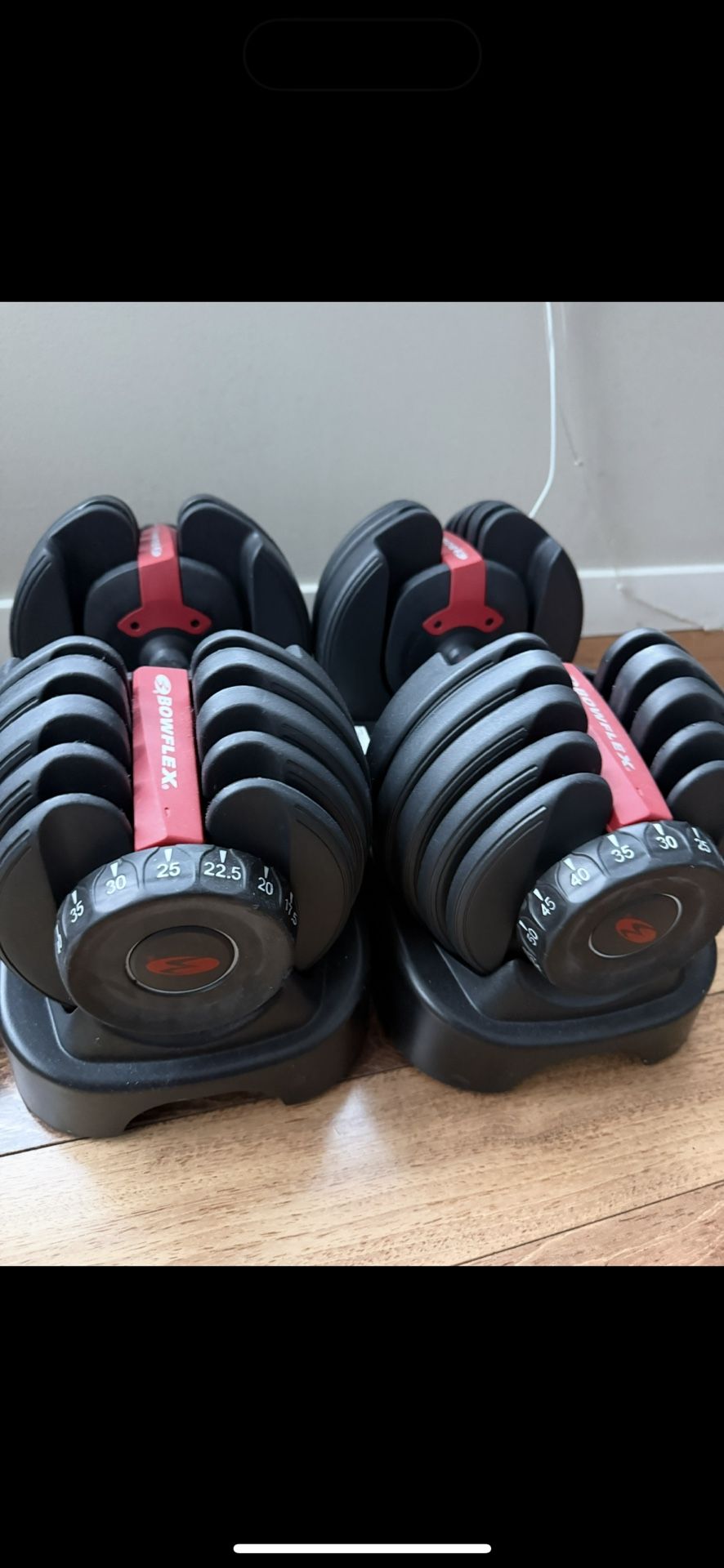 Like new. Adjustable up to 52.5 lbs per dumbbell