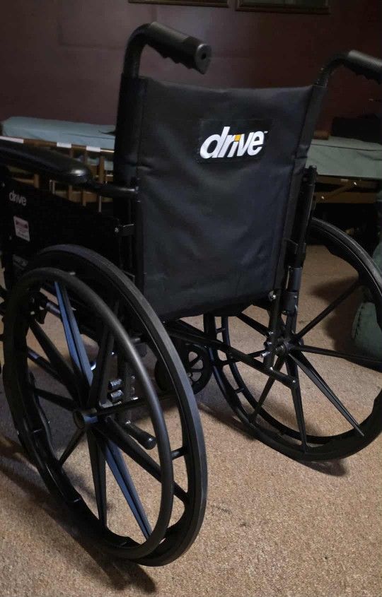 Lightweight wheelchair 15LBS. Easily to fold up and store. Legs are very easy to take off. Only used 5 times.