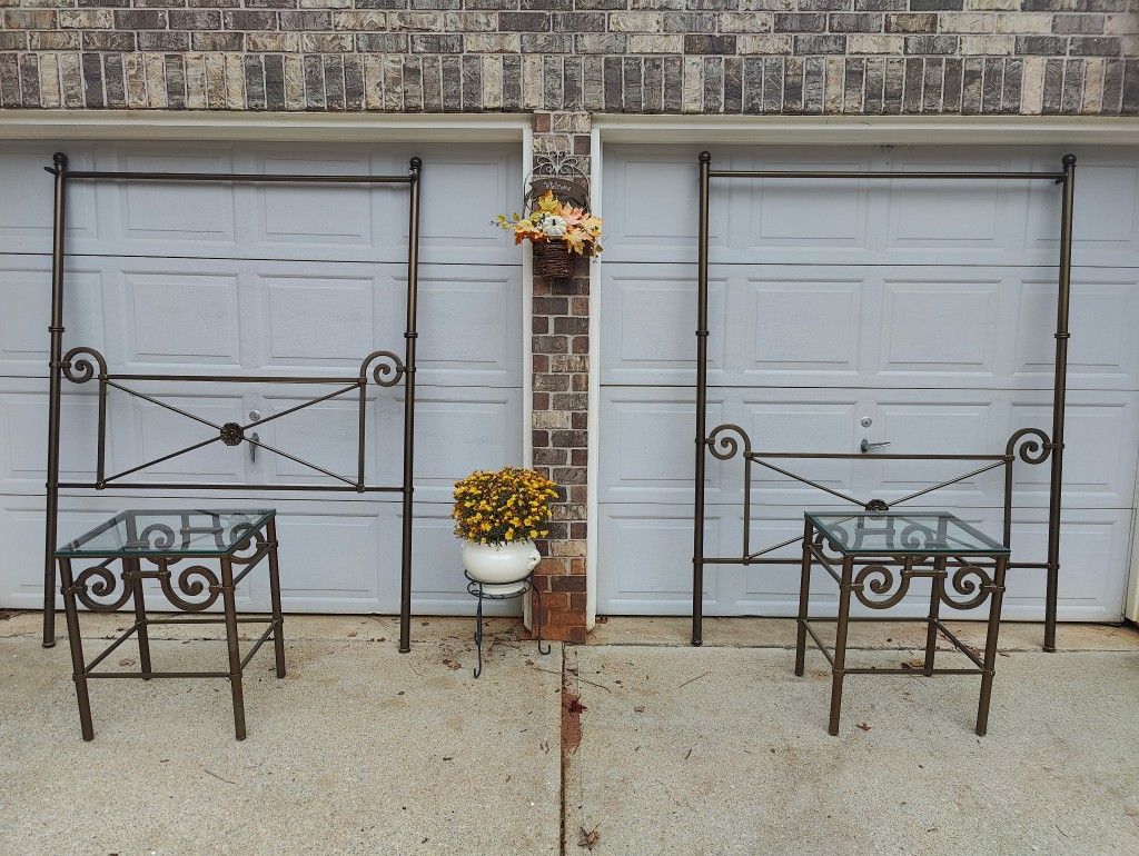 Bronze Wrought Iron Queen Size Bed With 2 Night Stands