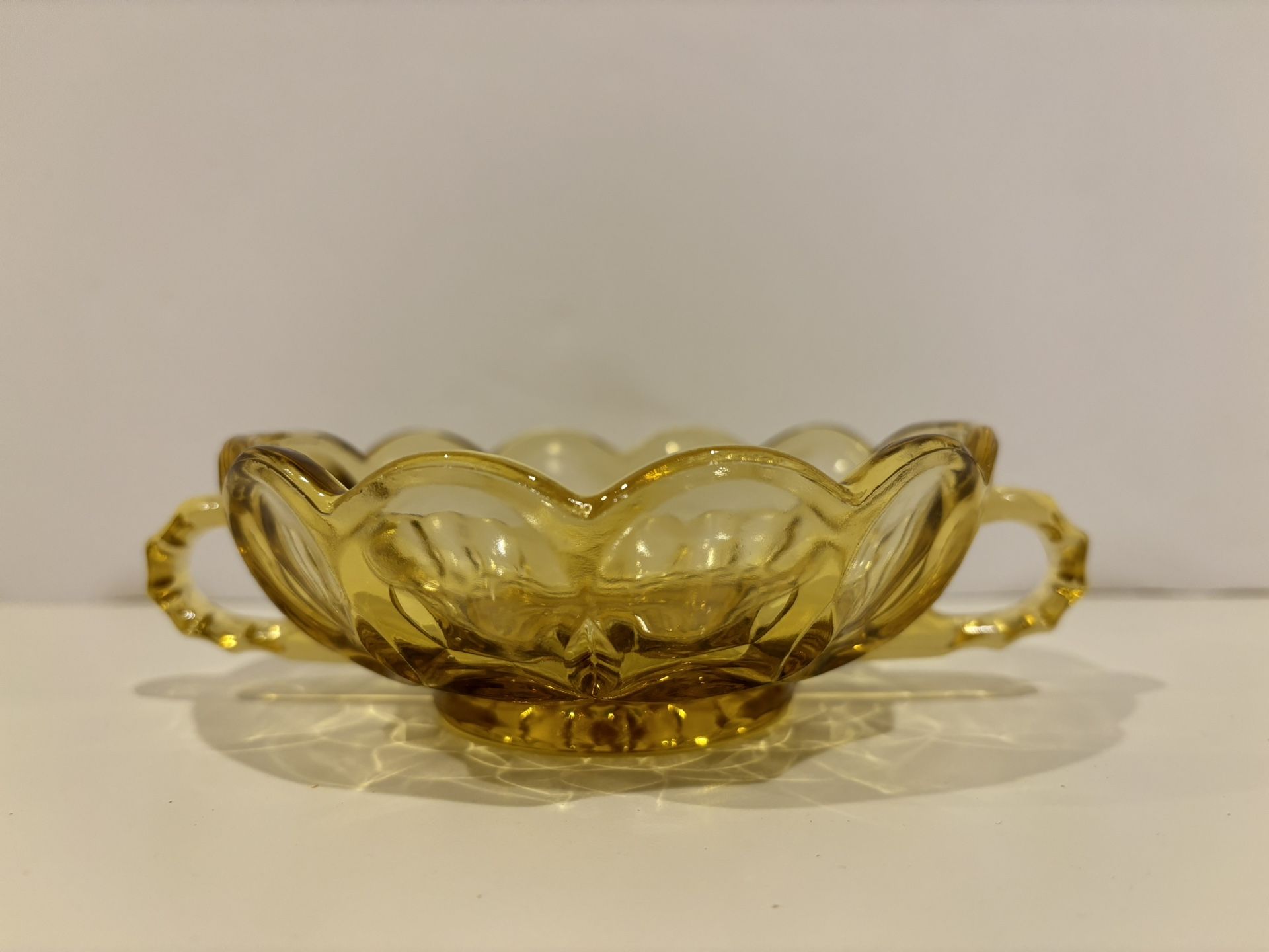 VTG Anchor Hocking Amber Scalloped Edge Glass Bowl w/Handles