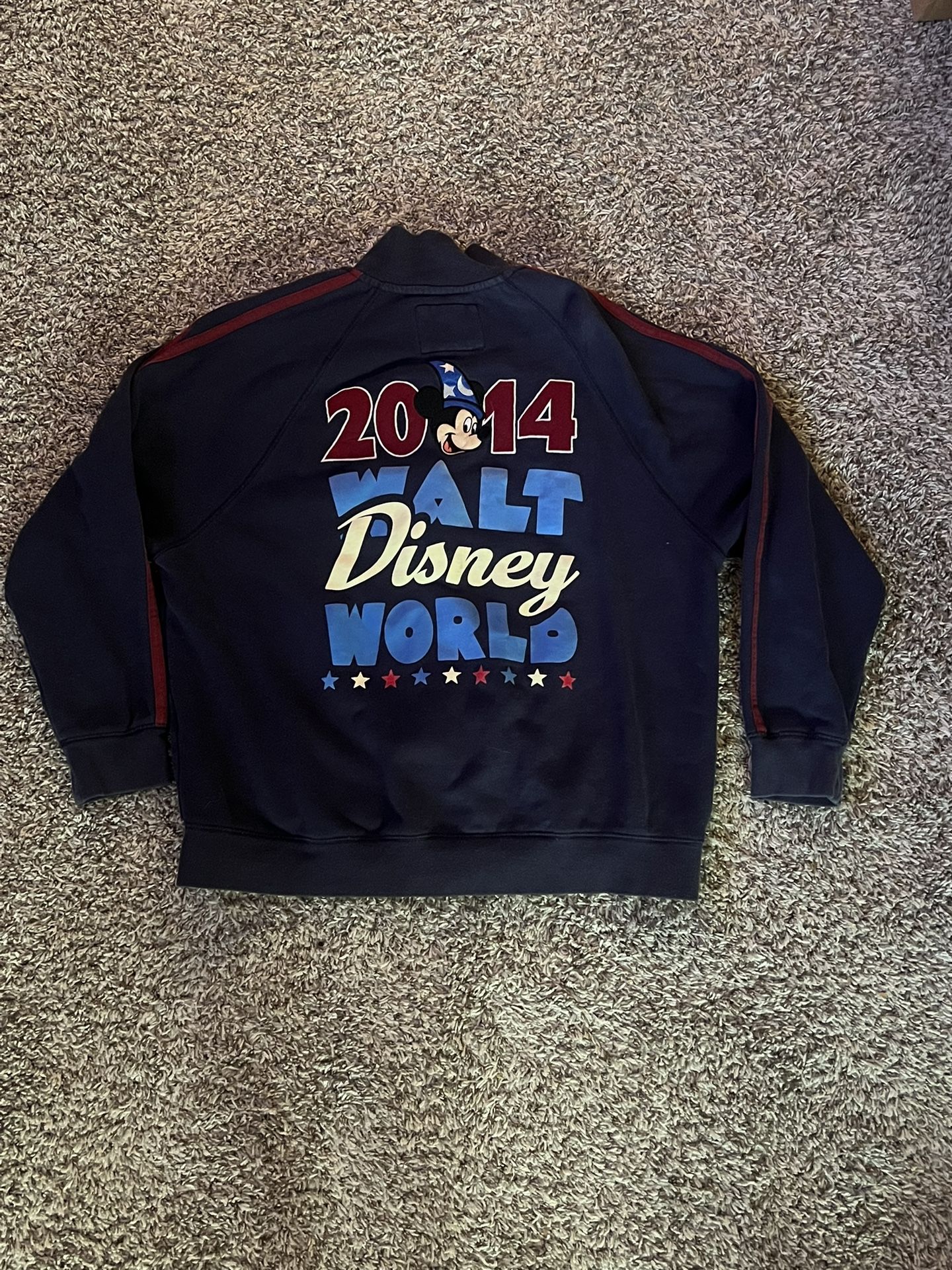 Walt Disney World 2014 Navy & Burgundy Zip Up Sweatshirt Mickey Sorcerer LG NWT