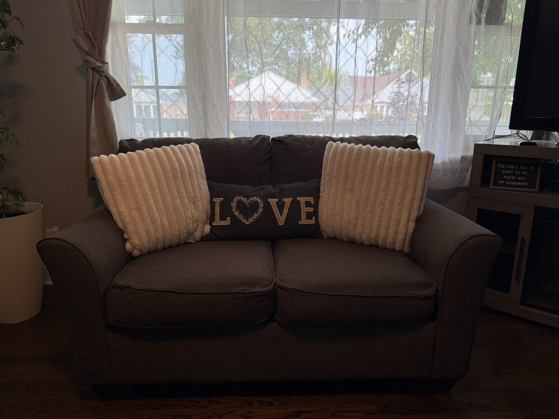 I have a love seat and lounge chair for sale no kids very sturdy, is three couches, but I don’t know if you wants to clean it or cover it because that have stain
