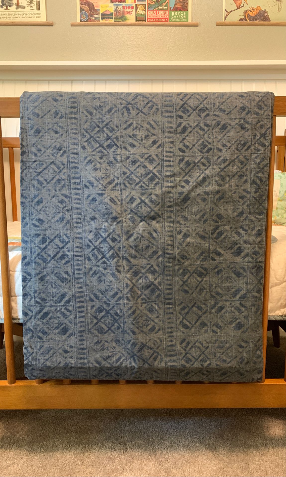 New without tags, king sized duvet. Beautiful, bought thinking I could conscience my husband we needed a queen bed but no such luck so it’s just been stored in the linen closet. No stains or tears.
