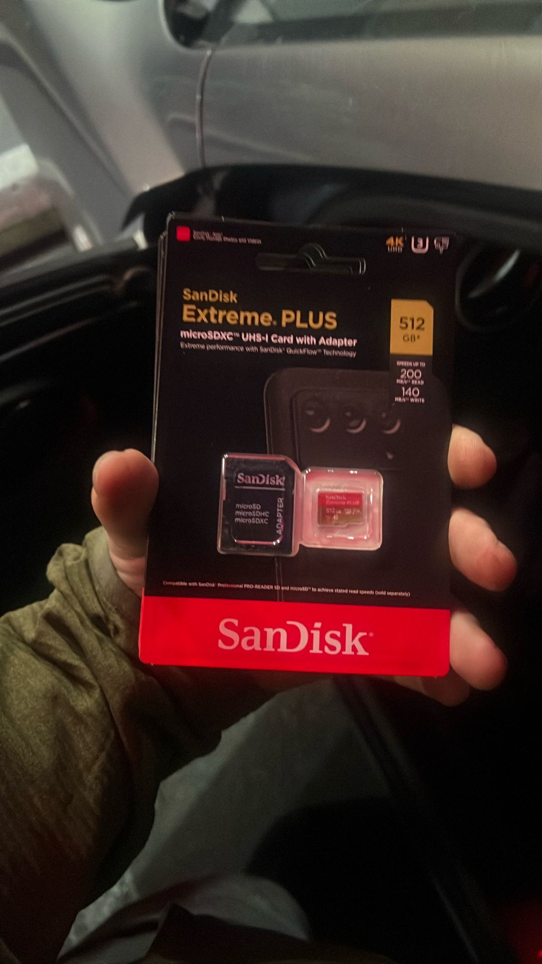 Sandisk extreme plus 512 gigabytes Comes with a SD card and a mini SD card Txt for details these are the super fast ones