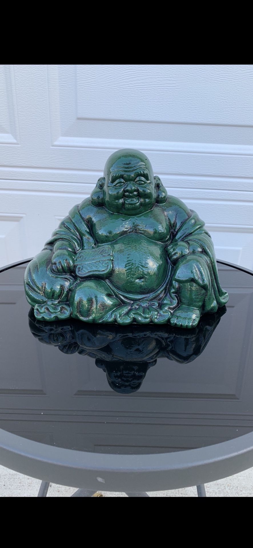 The green squatty Buddha statue