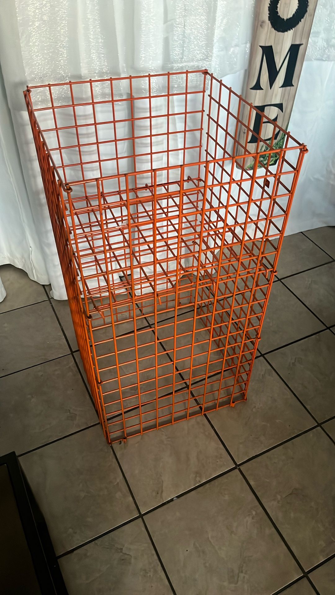 Orange, solid metal orange one shelf solid metal can be used for any type of occasion or any room. Must set up appointment for pick up.