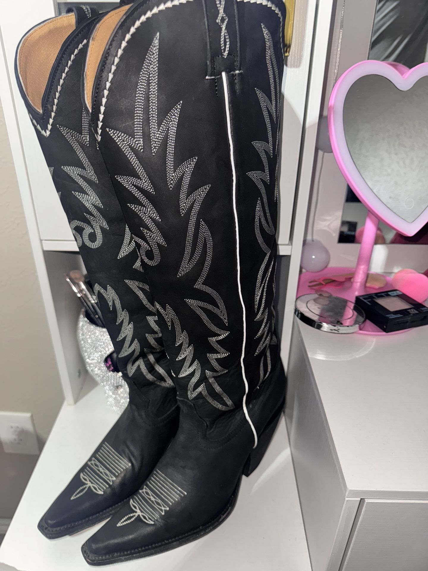 Womens boots size 9 3.5 inch heel Knee high Worn a couple times
