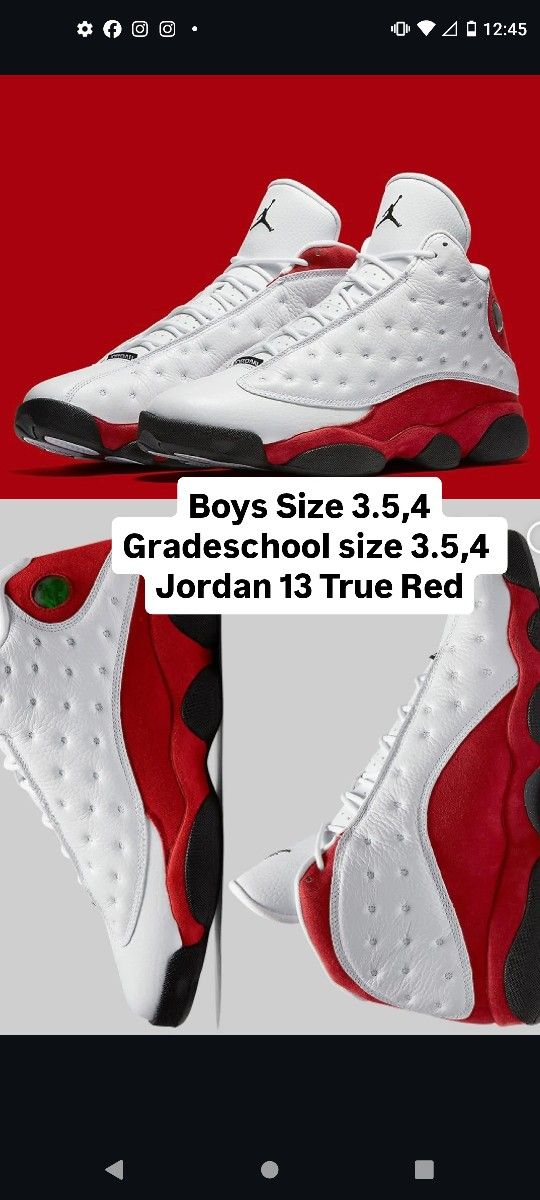 Jordan 13 True Red Boy Size 3.5,4 , Gradeschool Size 3.5,4