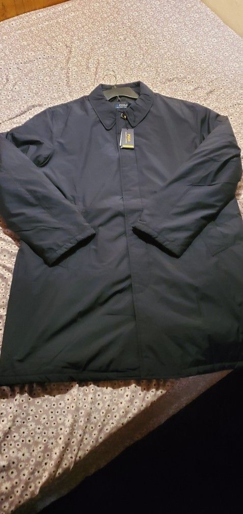 #(1) Long length polo jacket (XL) -($80) regular price ($165) # (2) Black polo jacket (S)-($80) regular price ($168) # (3) blue polo sweater (S)-($85) regular price ($168) # (5) Polo T-shirt (XXL)-($40) regular price ($65)