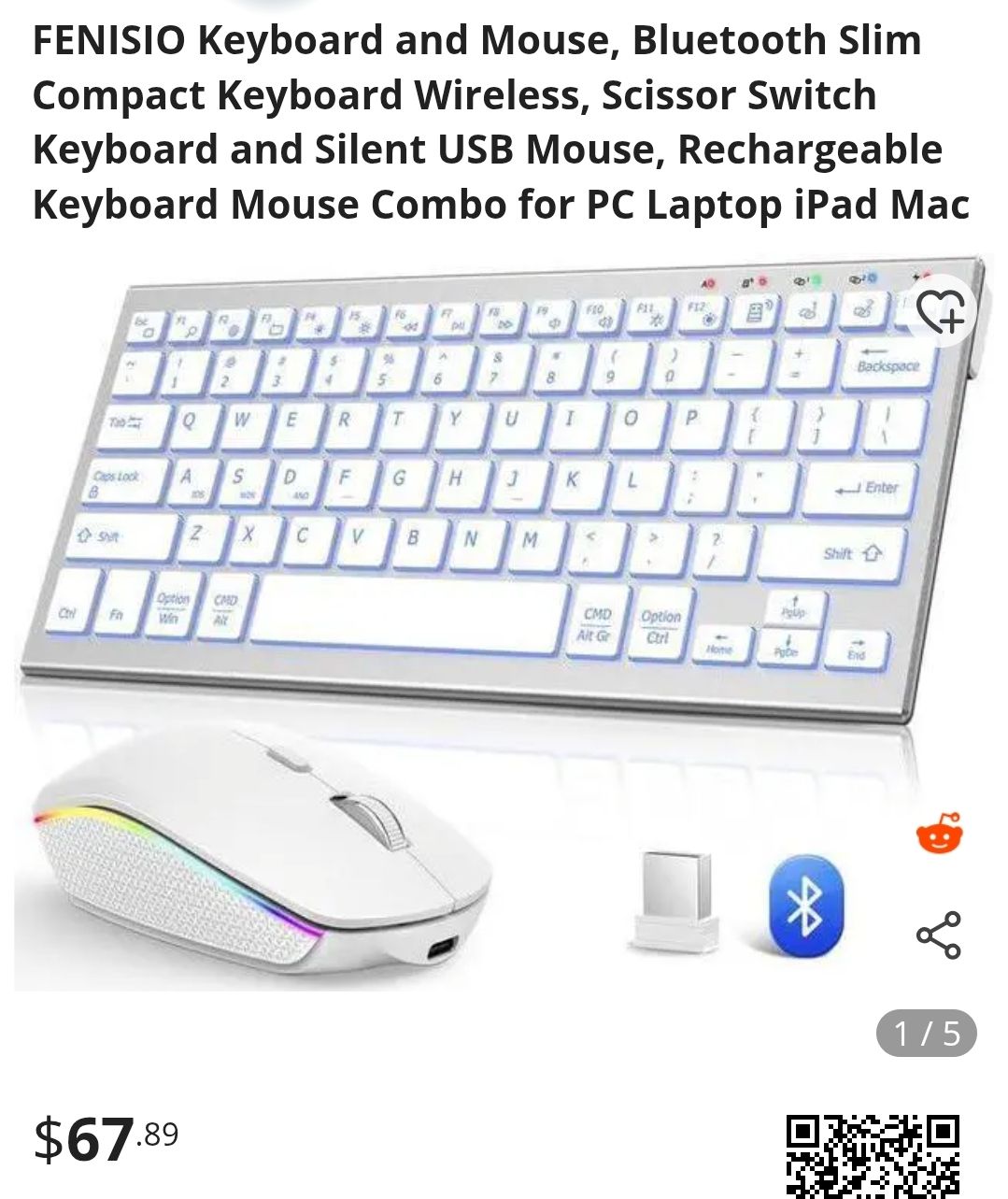 FENISIO Keyboard and Mouse, Bluetooth Slim Compact Keyboard Wireless, Scissor Switch Keyboard and Silent USB Mouse, Rechargeable Keyboard Mouse Combo