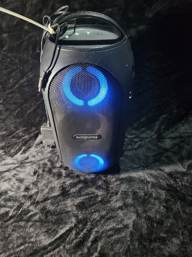 Used $75 OBO 18-hour playtime on a single charge Waterproof: IPX7 rating (it can handle rain/splashes) Note: This listing is for the speaker only. It requires a 15V 3A DC charger (barrel plug style), which is not included but can be found easily Works great Has Some dings/marks