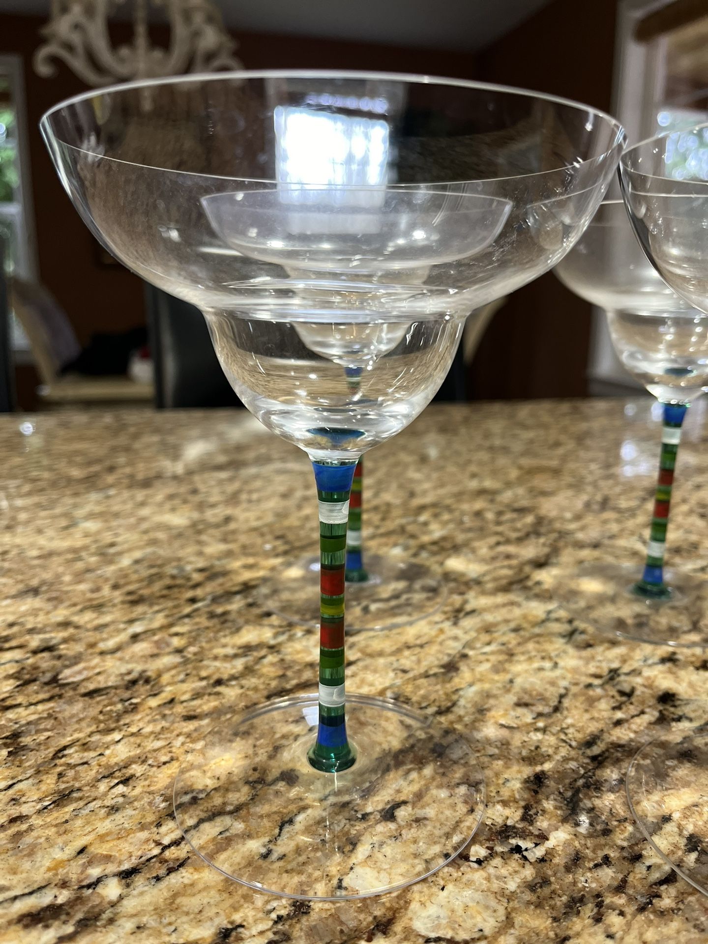 Great condition. 6-1/2” tall, 5”wide at rim. Great for any party! Pick up only as the glass is very thin. It wouldn’t survive shipping. I purchased these at a Pottery Barn store.