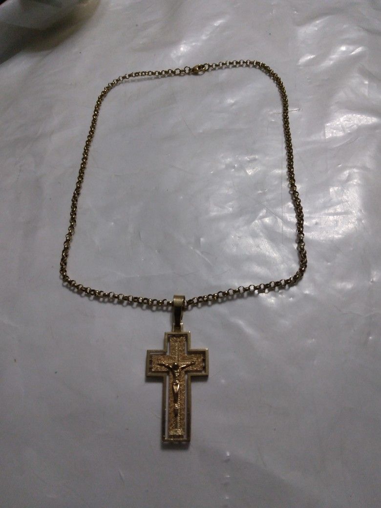 14K Gold Chain With 14K Gold Crucifix Chain Lent 20-in Used