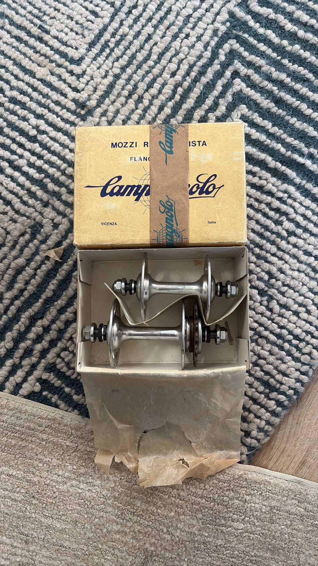 Campagnola track hubs NEW for a 28 spoke rim. With a campy track cog 16 tooth