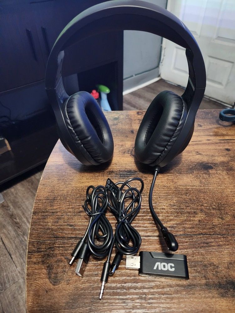 Aoc wireless gaming headset, only used twice, got it for christmas Has led lighting on the side Able to connect either dongle or bluetooth, compatible with PS5,PS4,XBOX,PC,NINTENDO SWITCH