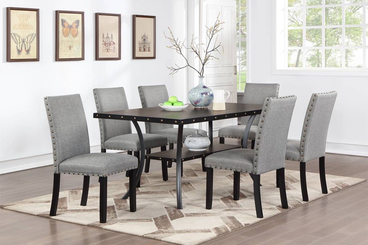 Brown Dining Table Set With Gray Chairs
