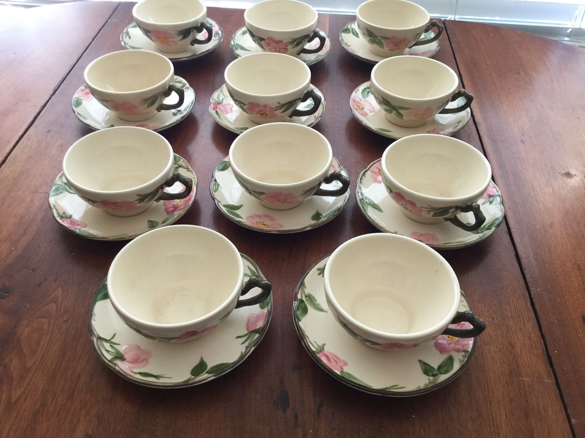 Franciscan Desert Rose pattern each cup and saucer set is 10 each. I have other items in this pattern. These are marked with numbers in black/brown ink some are marked made in USA which is the more desirable dishes rather than the English ones.
