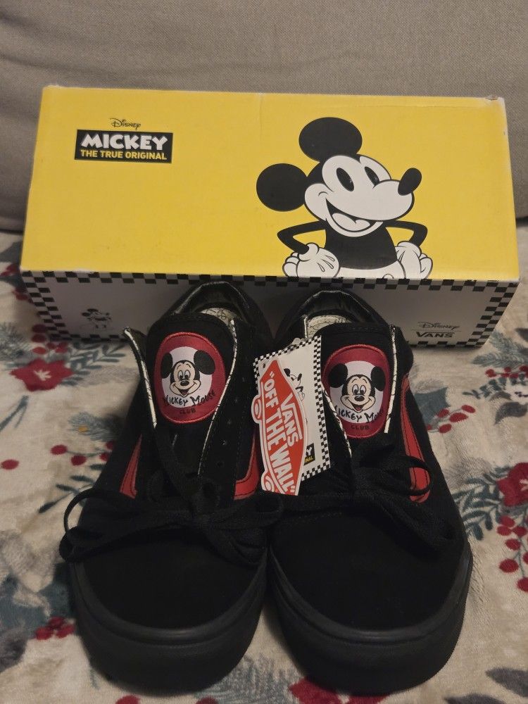 Up for sale is a brand new pair of Vans Old Skool x Disney Mickey Mouse Club sneakers. Details: Model: Vans Old Skool – Disney Mickey Mouse Club Colorway: Black / Red Men’s Size: 10 (US) Condition: Brand New / Never Worn Includes original box, tissue paper, and original Vans hang tags Official Disney x Vans collaboration Mickey Mouse graphics throughout (insoles, heel embroidery, tongue patches) These were part of a limited Disney collaboration and are getting harder to find, especially new with box. Great for collectors or everyday wear. Feel free to message me with any questions!