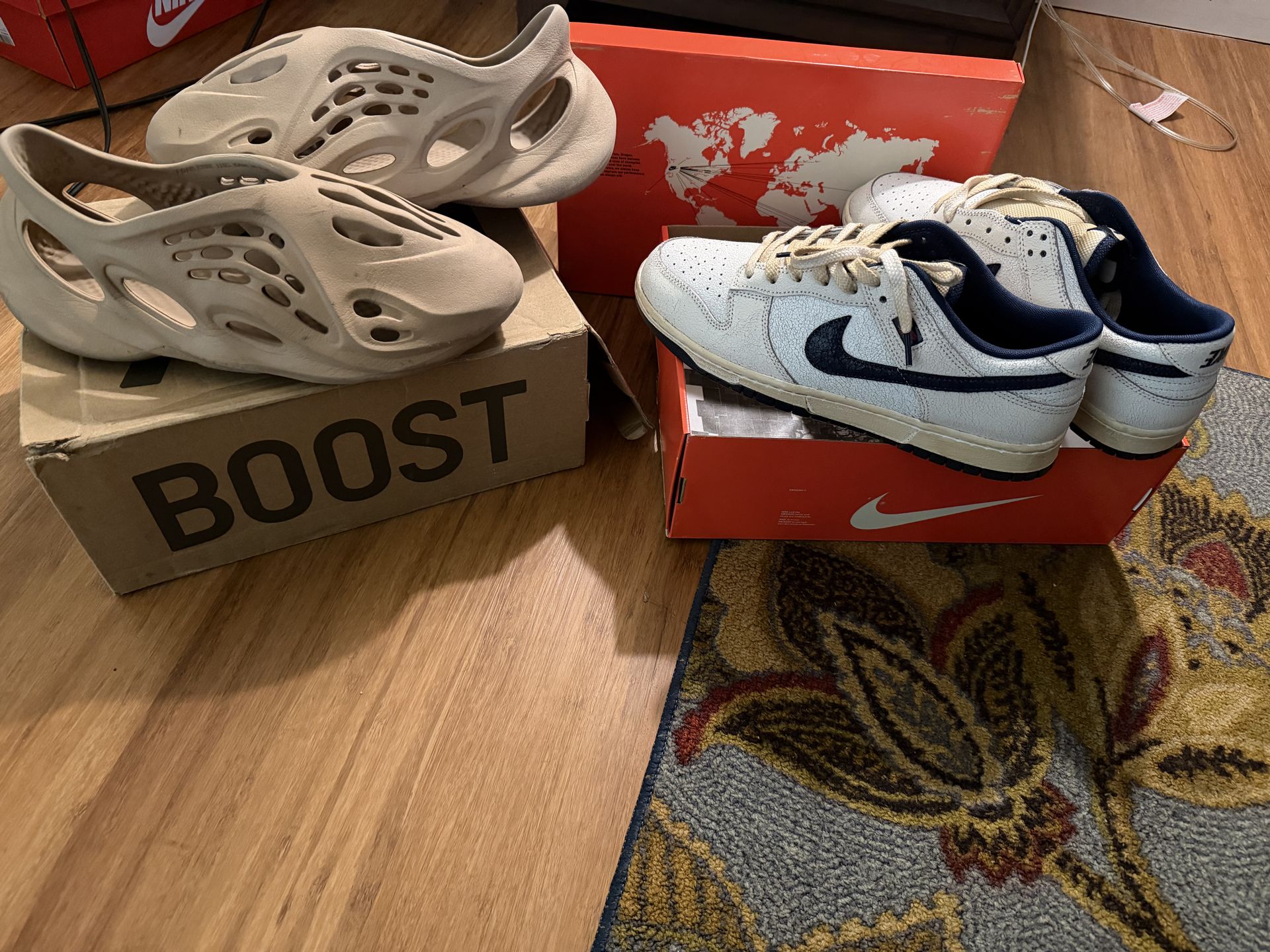 Both size 11, FoamRnnrs Used but in Great condition(only used for indoors), “Stranger Things” Dunks are Brand New only tried on in house. Just looking to get rid of them Quick.