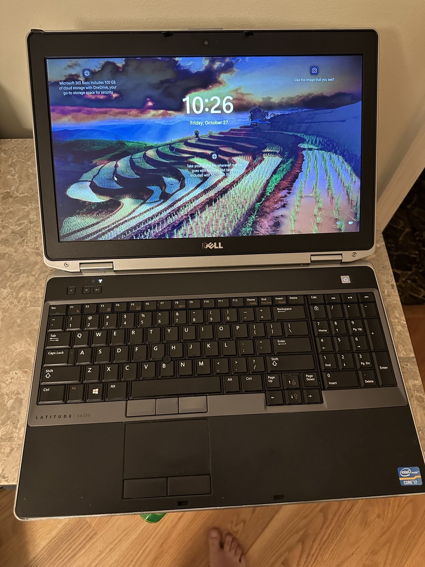 15.6” Dell laptop Fair Condition Comes with Windows 11 Pro installed Dell Latitude E6530 i7 - 3520u running at 2.90 GHz 8 Gb RAM 128 Gb SSD 15.6” Screen Battery life is acceptable 3xUSB HDMI & VGA DVD RW not working Bluetooth SD Card reader Webcam WiFi Comes with charger Pick-up in Glenview Thank you!