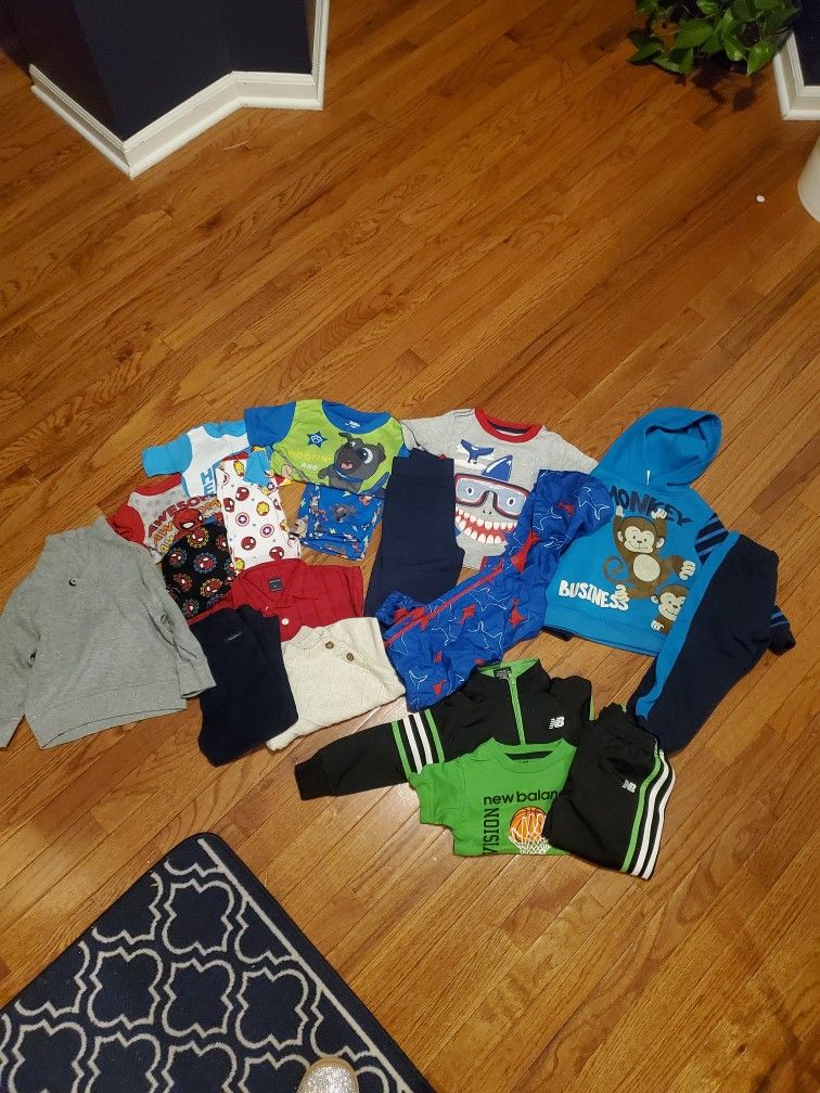 3 pajamas that were washed but never worn spider man and puppy pals 4 outfits one with Windbreaker and another with a button-up with a nice sweater And a sweater
