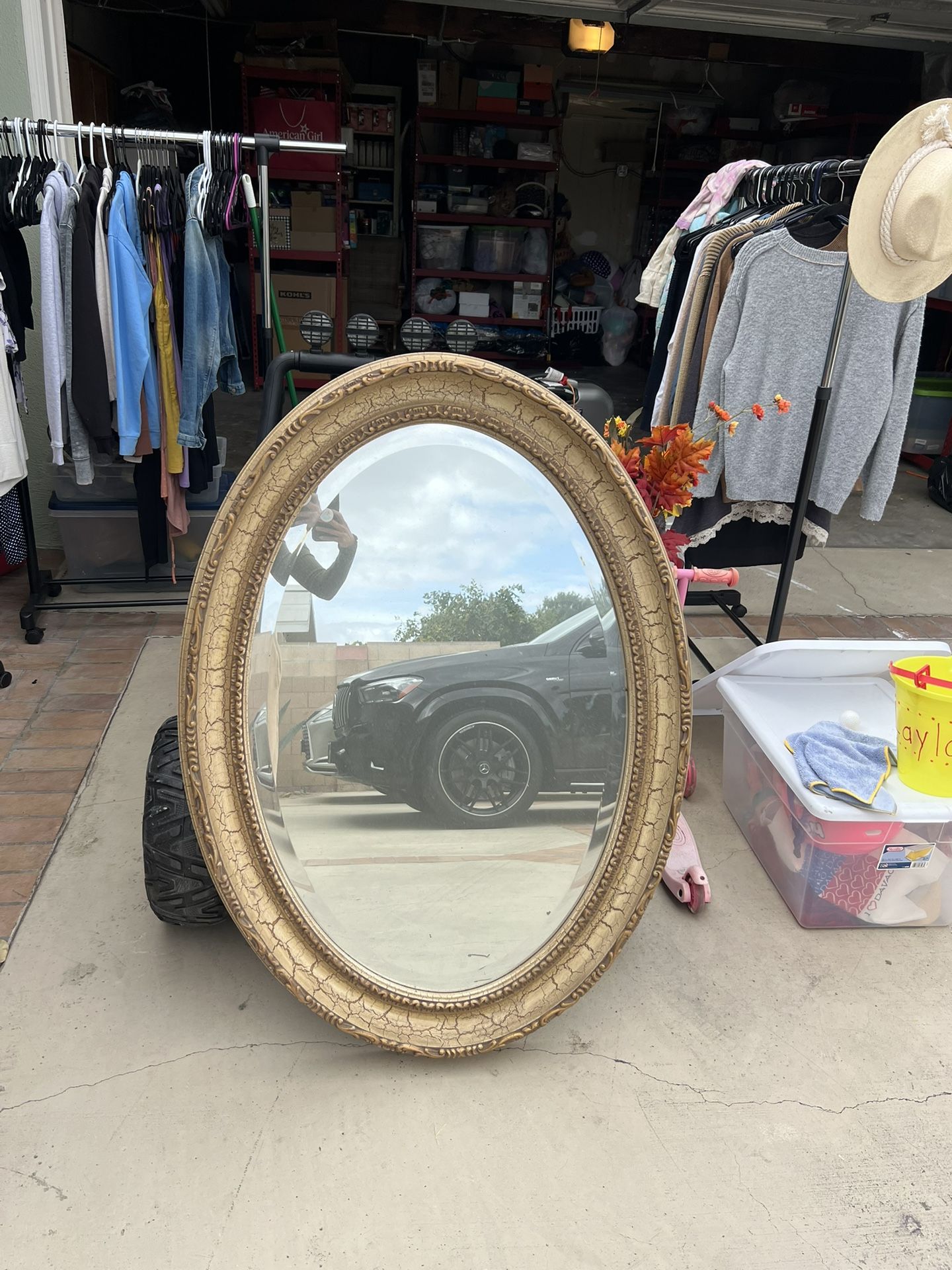 Beautiful champagne gold paint framed oval mirror, 42 x 29 inches. Give it a good wipe and it’s perfect! Purchased for $150, yours for only $30 FINAL SALE. If it’s up, ITS AVAILABLE so don’t ask or you will be ignored. ONLY message me when you’re ready to pick up in Anaheim (ball & brookhurst). Thanks!