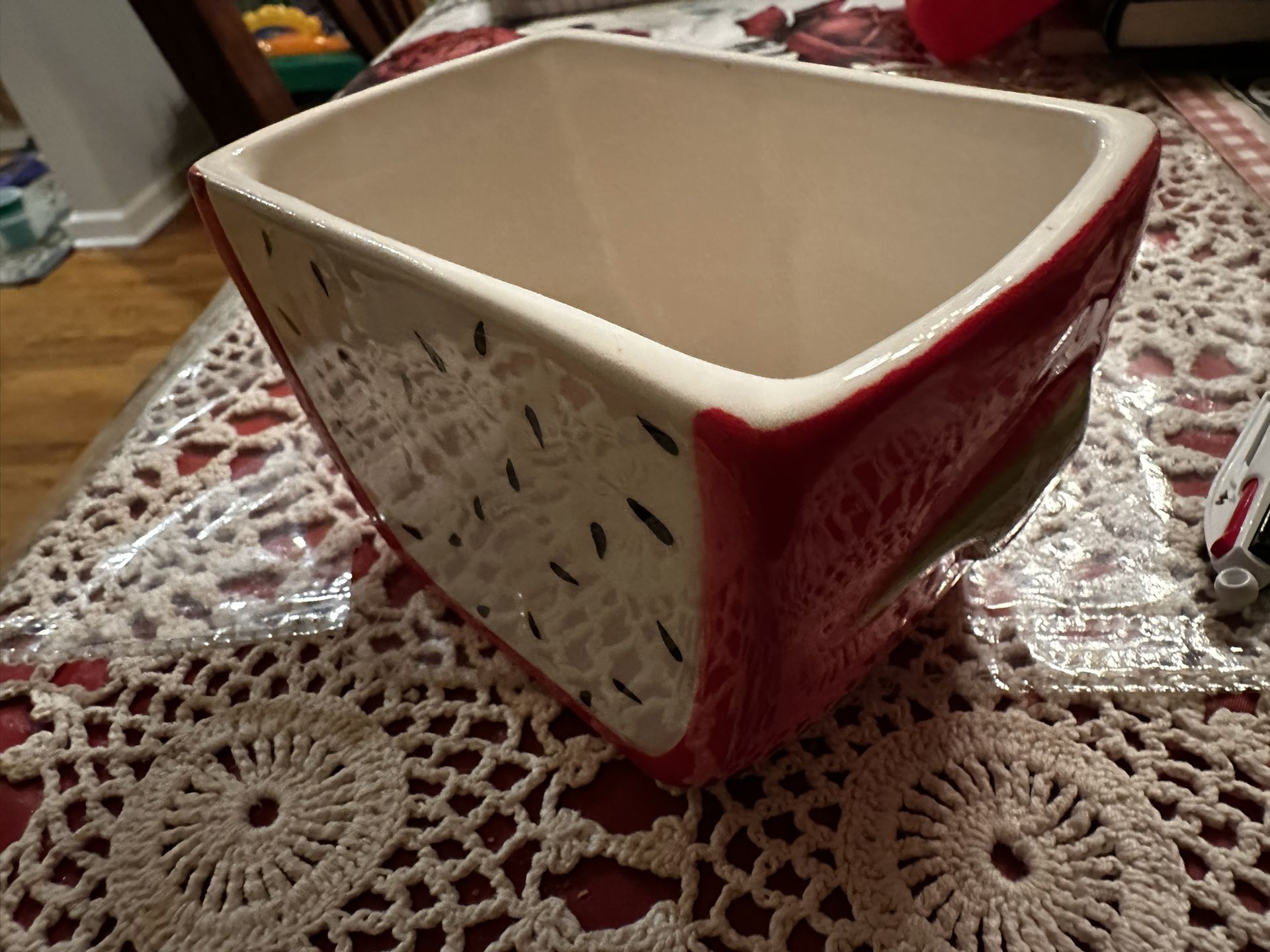 Add a splash of color to your home with this charming watermelon-themed ceramic planter. Featuring a vibrant red exterior and a crisp white interior, this piece is perfect for adding a playful touch to any room.