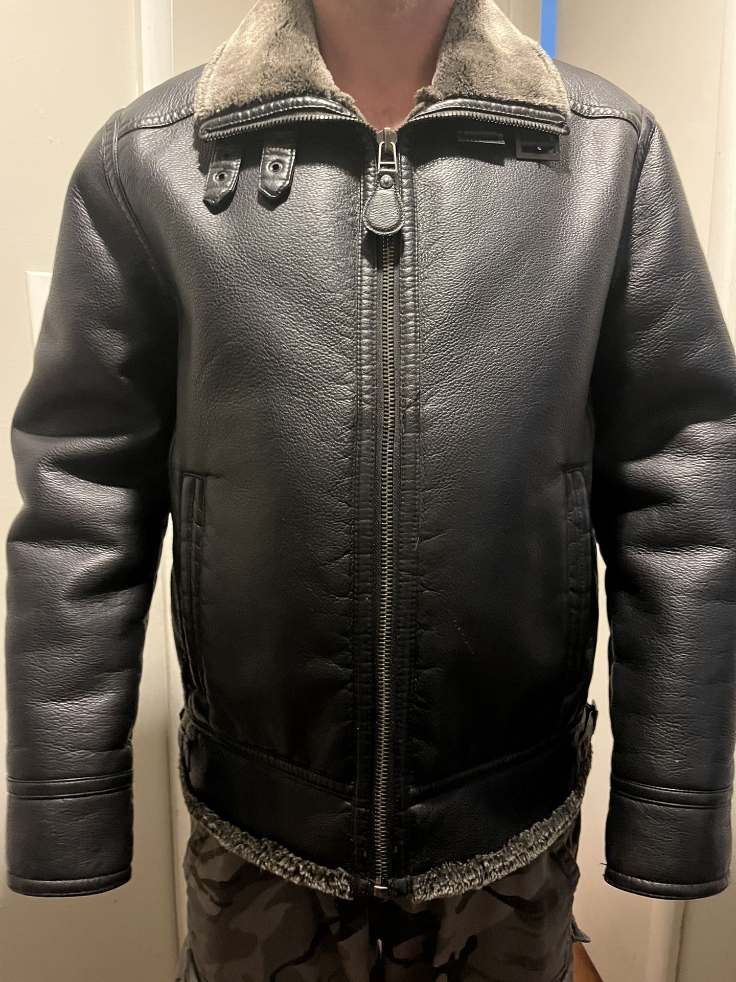 Faux fur lined men’s jacket. Medium.