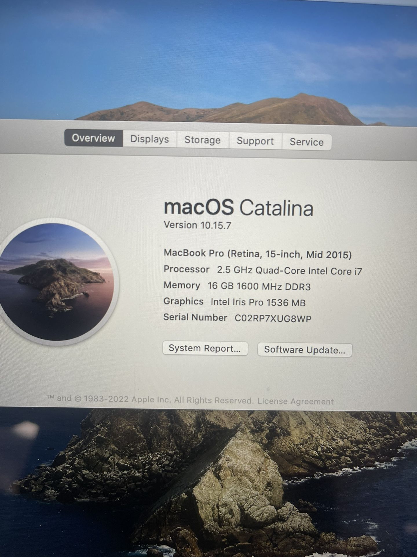 macbook Pro 2015, 15 Inch, i7 core, 16 GB, with warranty