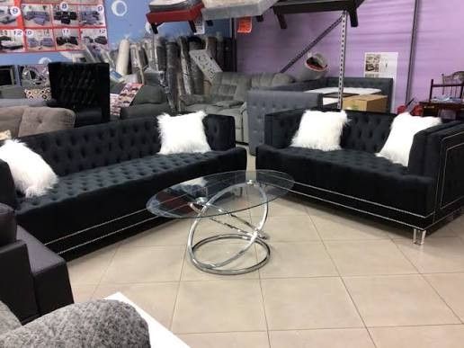 Brand New Black Or Gray Velvet Modern Sofa + Loveseat 2PCs Set