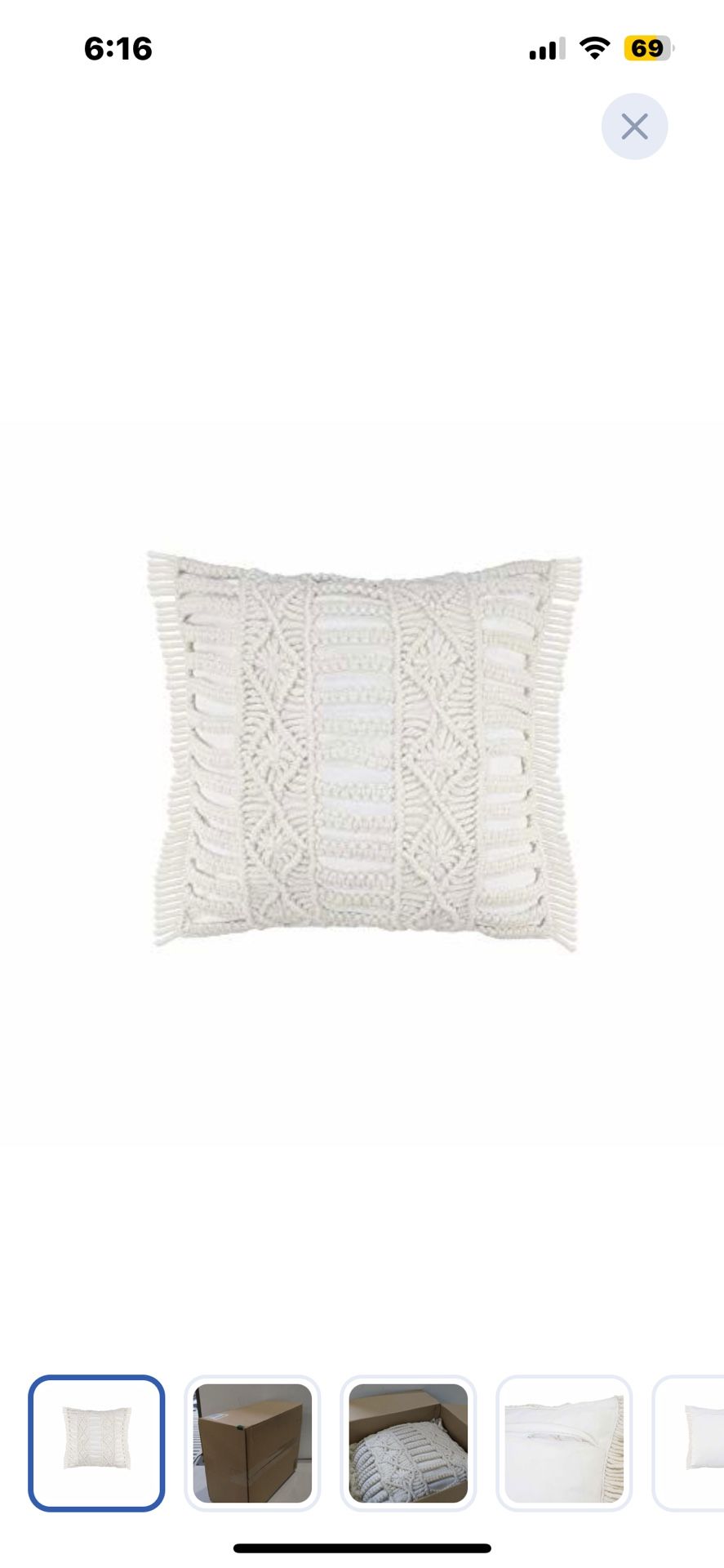 White, modern geometric design and neutral tones, cover has discreet zipper for easy removal