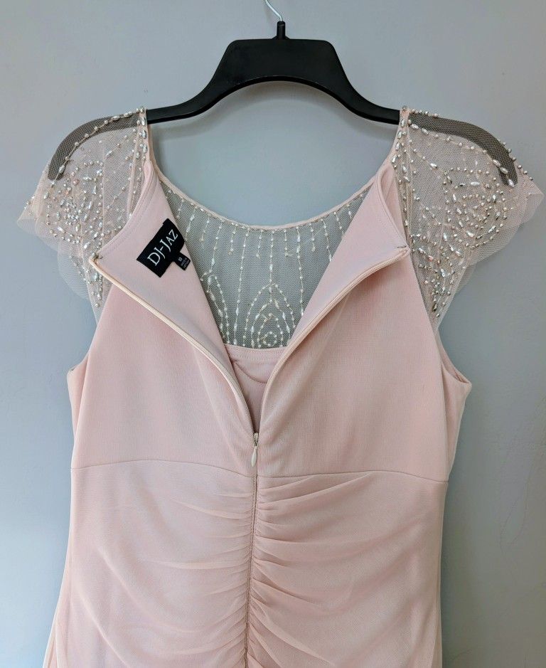 DJ-Jaz- Peach, floor length, beaded cap sleeve evening dress Size 10 Back zip Worn once, washed after