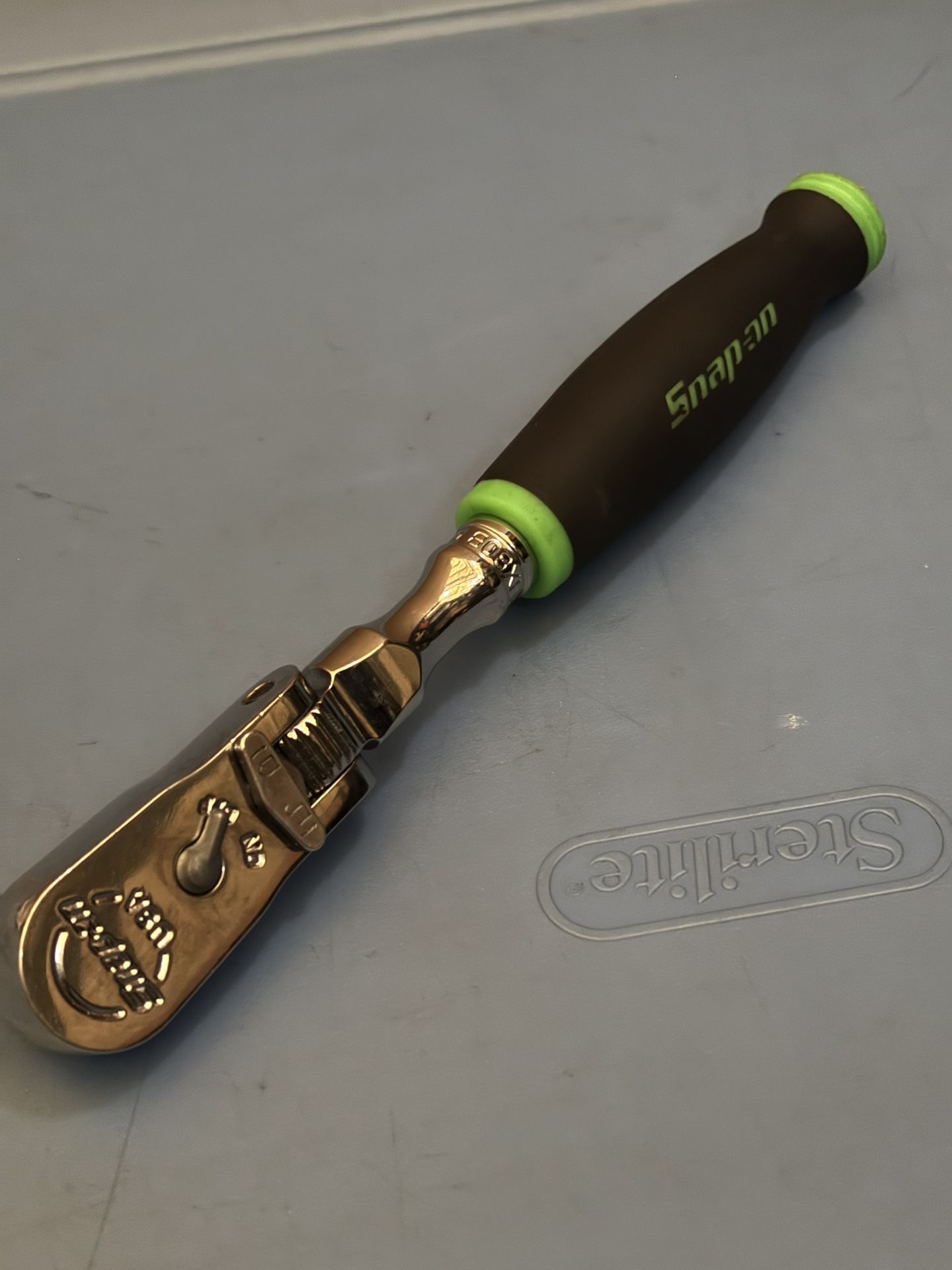 Snap-on Tools 3/8" Drive Dual 80® Technology Soft Grip Standard Handle Locking Flex-Head Ratchet (Green) Good Condition $140 Check my other offers
