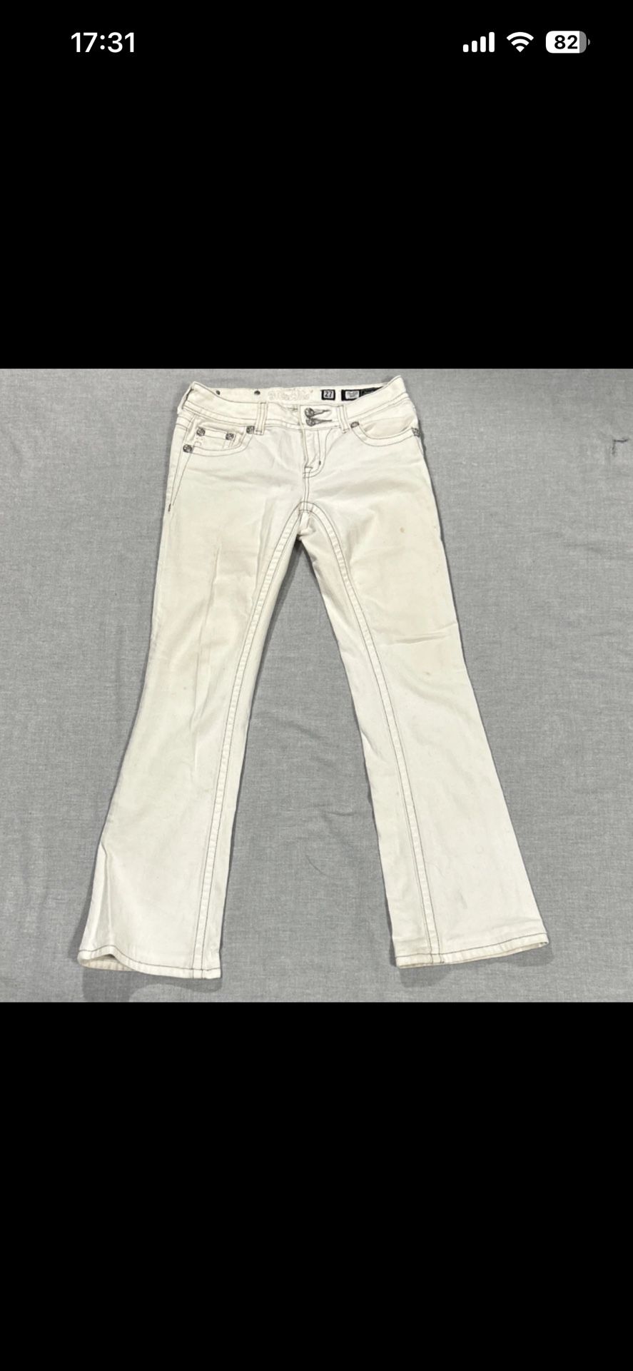 Miss Me Bootcut White Denim Jeans Light Wash Embroidered Button Accent 5-Pocket
