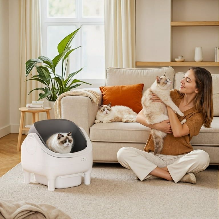 New Automatic Self-Cleaning Cat Litter Box – Large Open-Top Design for Multi-Cat Families, Integrated Safety Protection, Includes Trash Bags New in b