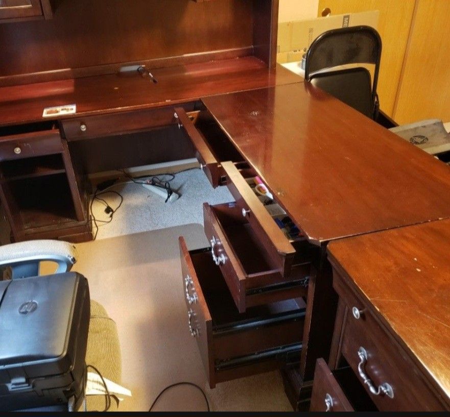 Great.L shaped solid wood desk just need more space in my home.