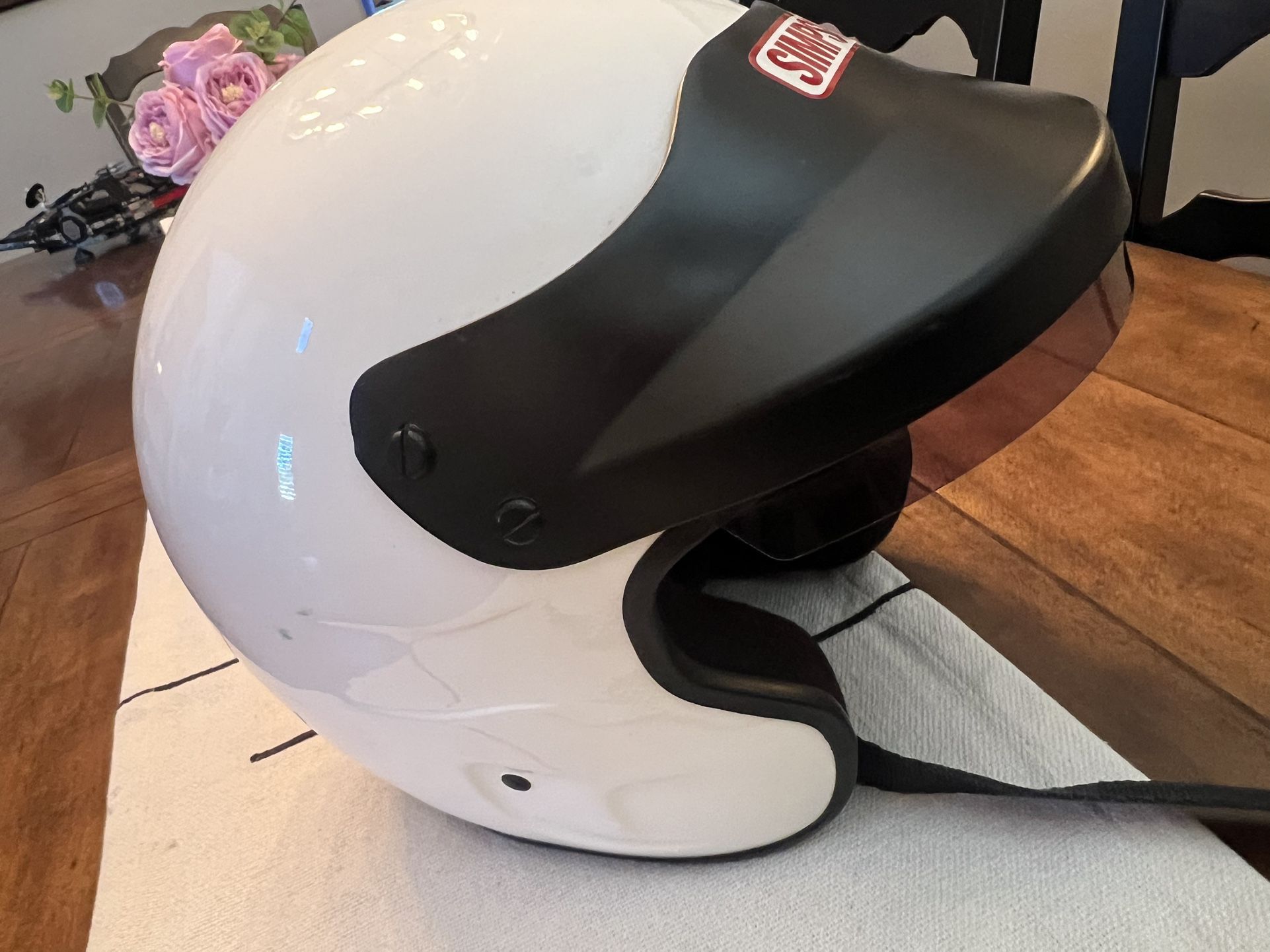 Great helmet only wore a couple times so in excellent condition. Green abrasive mark from sitting next to green box in truck other than that no scratches. Size Large Retails for $299