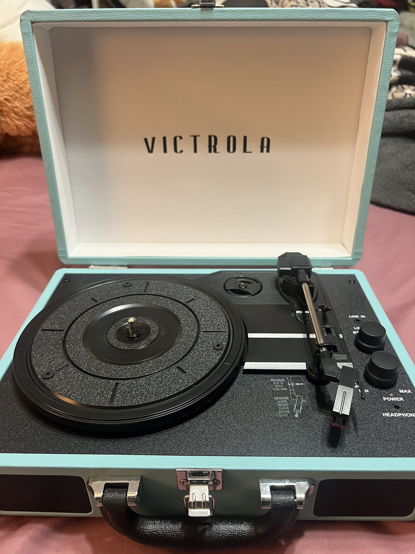 Only used about 5 times. It’s in very good condition. Record player w/ Nirvana record