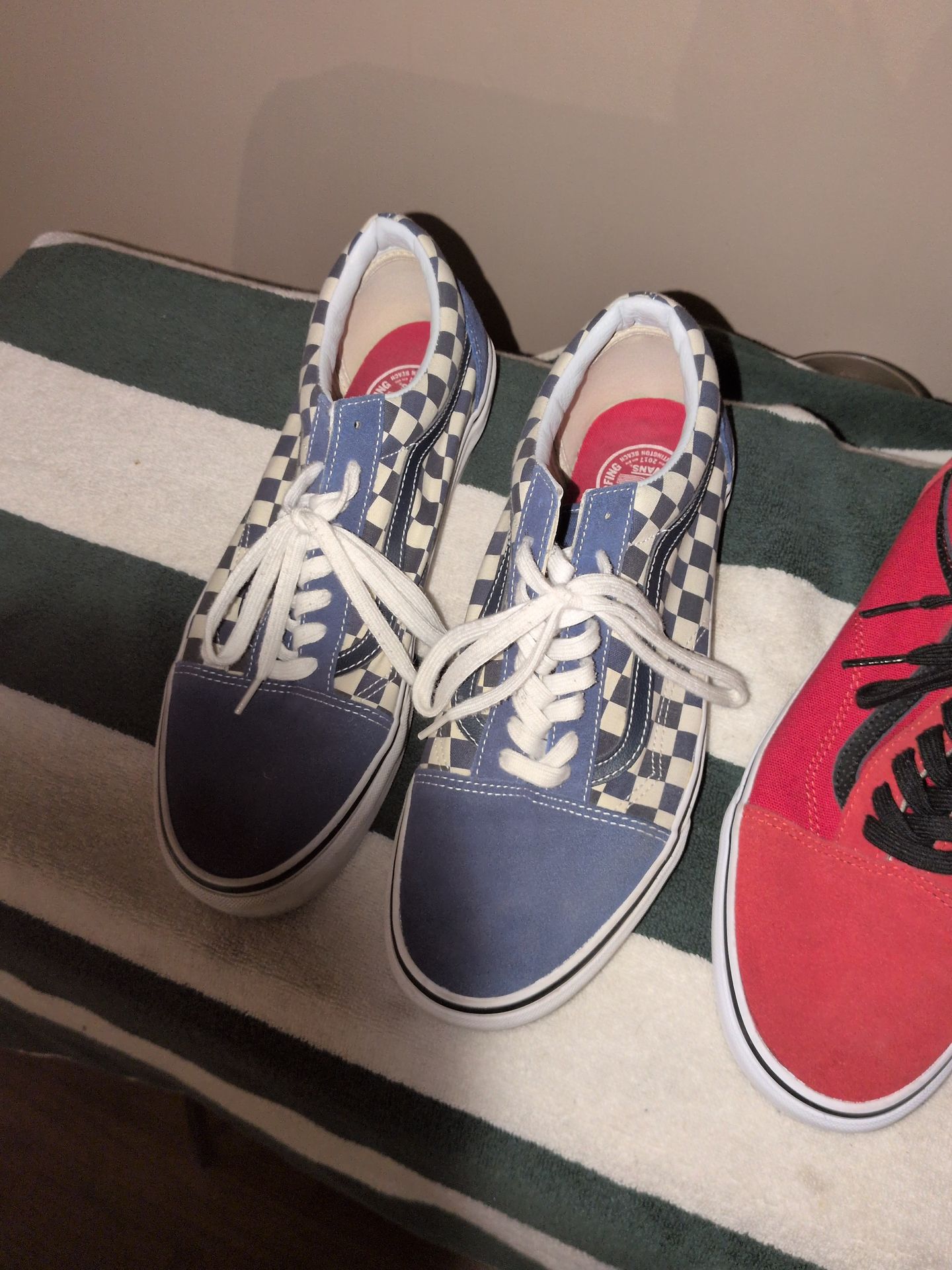 Vans Old Skool sneakers in the Blue Checkerboard colorway. Us open of surfing