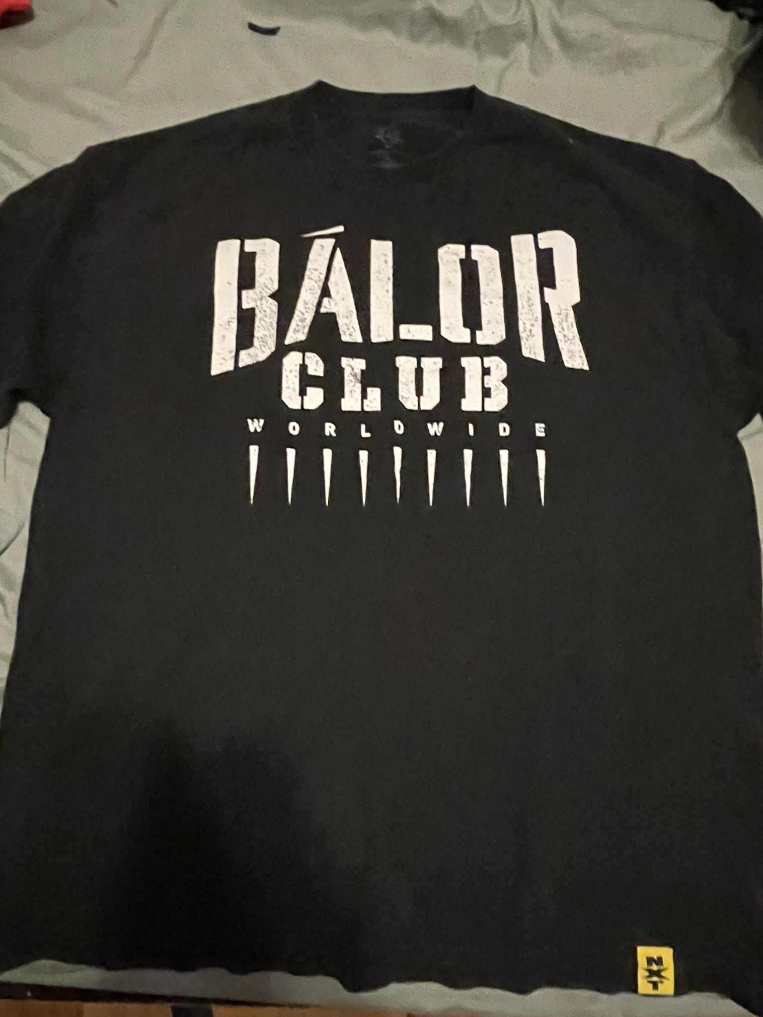Vintage WWE Finn Bálor merch featuring the iconic "Bálor Club Worldwide" graphic with the "Demon" teeth motif. This shirt includes the yellow NXT woven tag at the bottom hem, making it a great piece for wrestling fans and collectors. Shoot me a DM if like em 🤙🏾