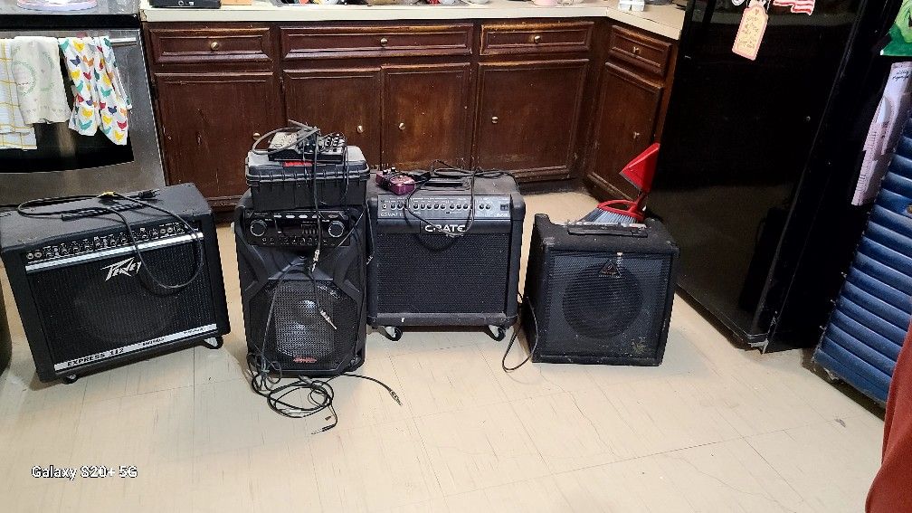 1 Peavy express 112 Sheffield equipped 1 crate GLX65 guitar amp 65watt 1 behringer ultratone k450fx 45watt keyboard amp 1 max power karaoke spekaer