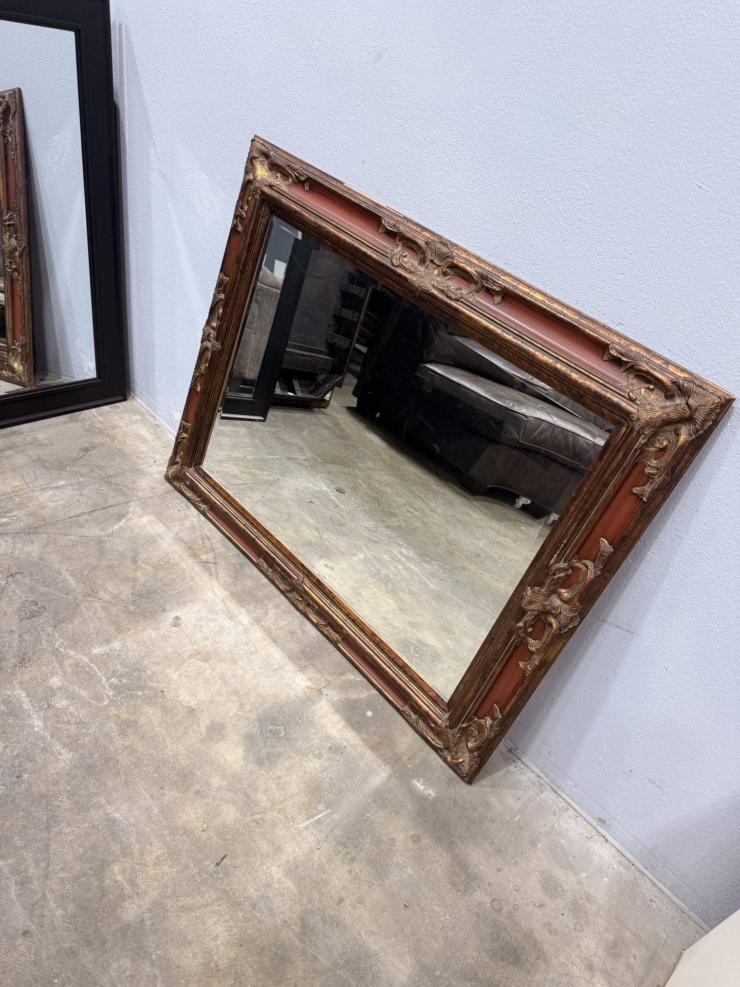 Add a touch of vintage elegance to any space with this beautifully detailed mirror. Works great as a statement piece for an entryway, hallway, or above a mantel. ✨ Features: • Rich reddish-brown wood tone with intricate gold accents • Heavily carved frame with antique styling • Can be leaned or mounted 📏 Approximate Dimensions: • Width: 43” • Height: 35” • Depth: 2” 🛠️ Condition: Good condition with some light wear consistent with age. No cracks in glass or structural damage. 💲Price: $65 🚗 Pickup only – mirror is solid but not too heavy, easy to load 📦 Unique piece that adds instant character to your space