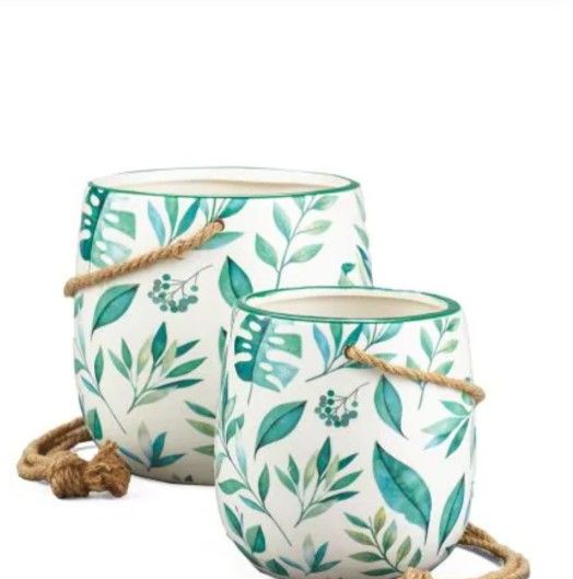 Measurements are in the second picture. This is ceramic a 2 pc set Has rope for easy hanging