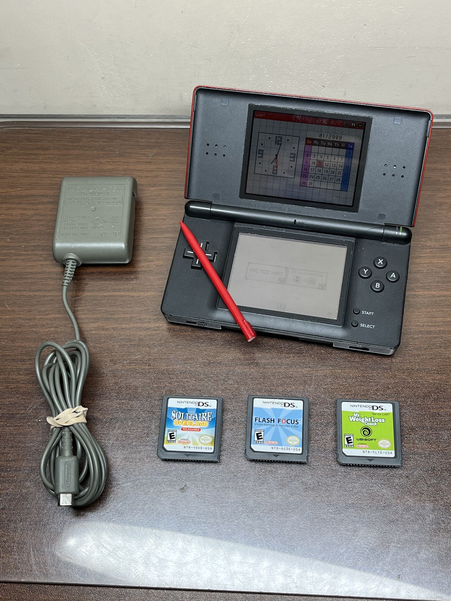 Nintendo DS Lite Handheld Console USG-001 Crimson Red/Black w/ Stylus & 3 Games