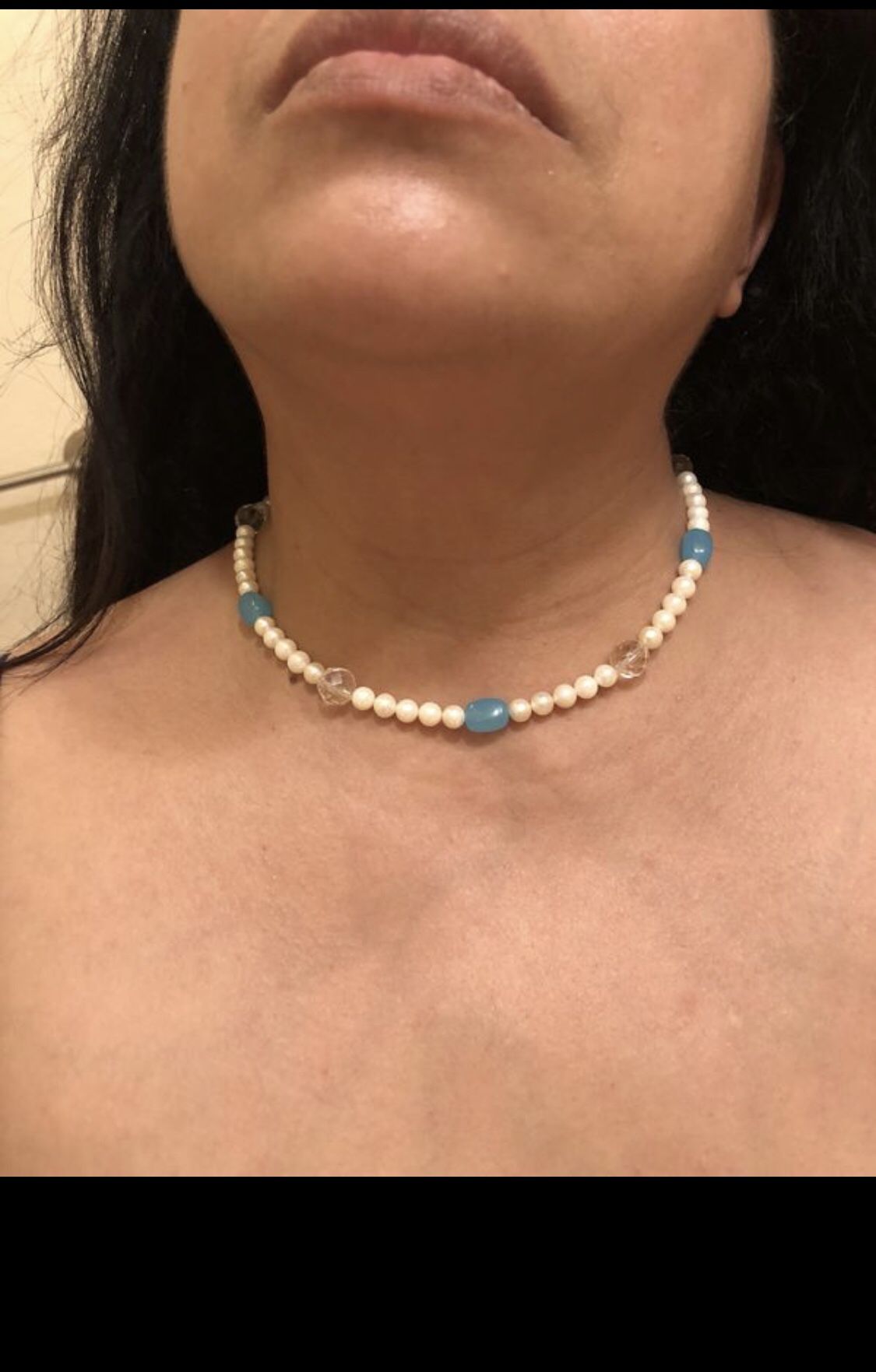 16 inches 925 sterling silver Crystal quartz , blue chalcedony and Akoya pearl