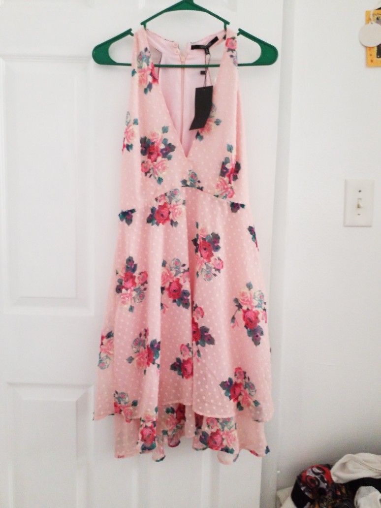 Pink polka dot dress size large new with tags brand 19 Cooper v neck zipper back